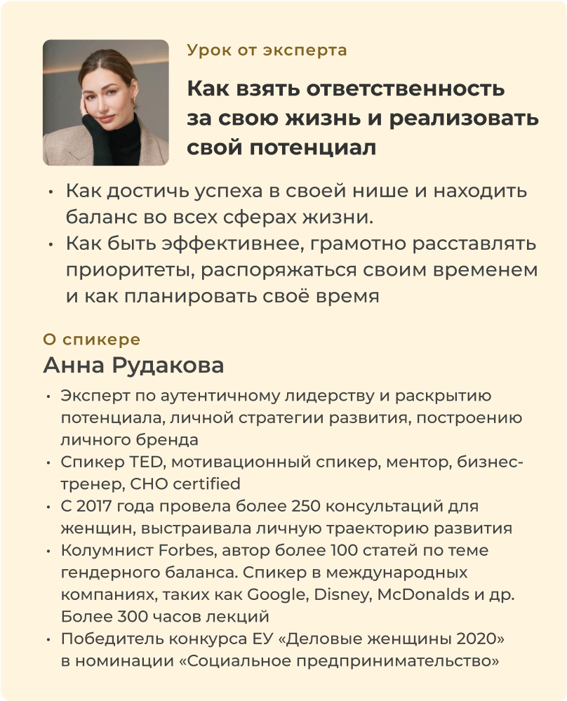 ● Бонус. Урок «Как взять ответственность за свою жизнь и реализовать свой потенциал» (А. Рудакова)
